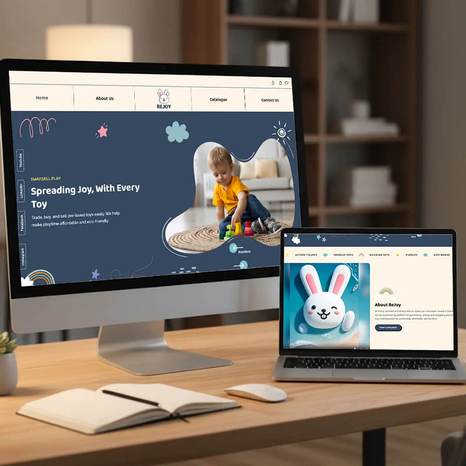 We designed and developed the complete Rejoy website, ensuring a smooth user experience for buying, selling, and swapping pre-loved toys. The platform balances engaging visuals with intuitive navigation, making it easy for families to explore and interact